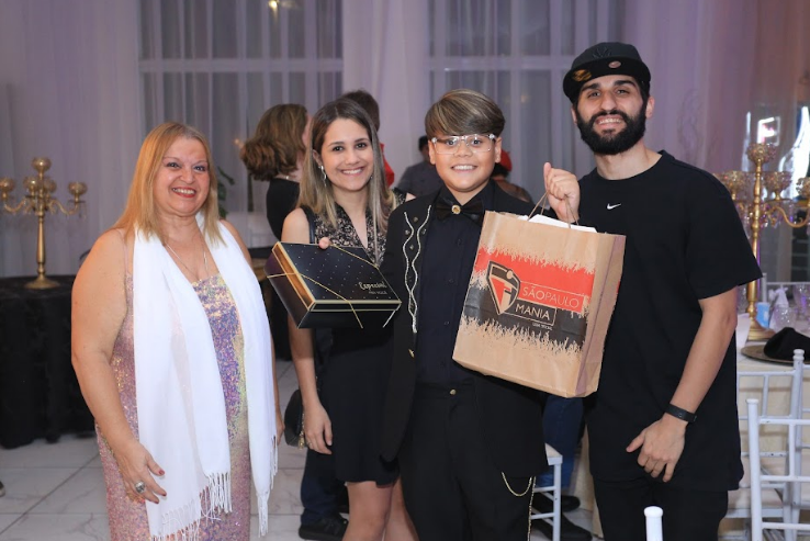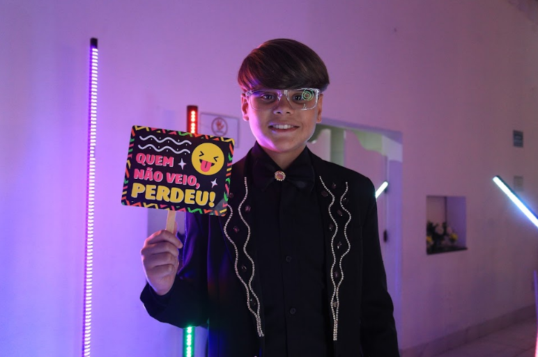 "Uma honra, ver todo o carinho, respeito e admiração com meu filhote. " Palavras de Magda Reches, mãe do jovem Victhor. "Não sei o que falar com tudo isso que prepararam para mim, agradeço de coração aos parceiros Creoe Prime, Bolo Açucarados bolos e doces, Melhor drink, Pista de Led Artsglasss , Robô de Led